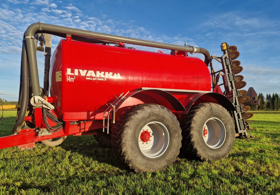 Huippusiisti Livakka 14m³ lietevaunu kuormaimella, multaimella ja hyvällä rengastuksella.
